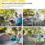 Two of us put this together in less than 30 minutes. All the holes are pre-drilled. They are also pegged in the most important parts. There are written instructions and pictures. The max chickens for this would be 4. Preferably 3 grown hens. I am buying a second to put inside my greenhouse for winter. I am using little giant hanging water feeders for the inside so they don’t take up too much of space. This is a great bargain, easy to use, and beautiful.